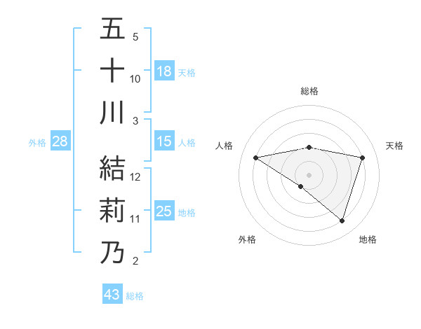 五十川 結莉乃さんを姓名の画数から五運を鑑定