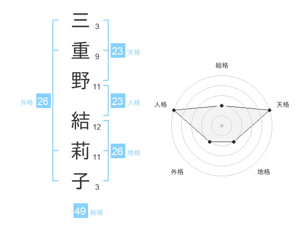 三重野 結莉子さんを姓名の画数から五運を鑑定