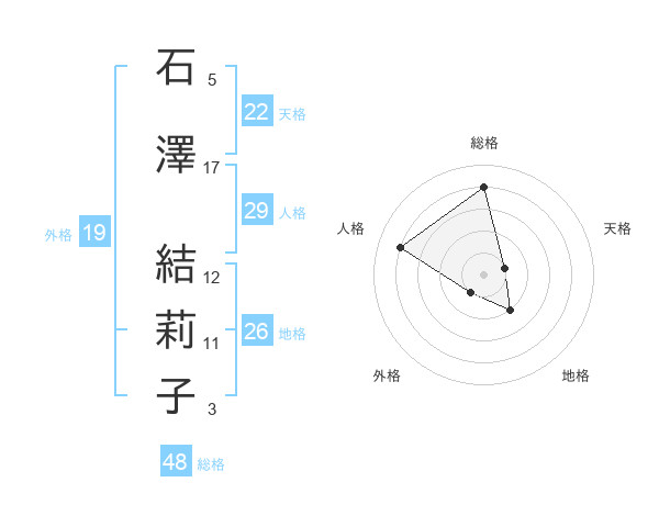 石澤 結莉子さんの総格は48画の4点
