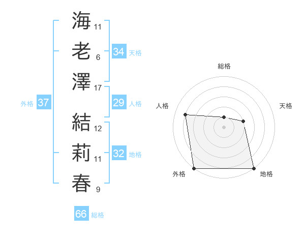 海老澤 結莉春さんを姓名の画数から五運を鑑定