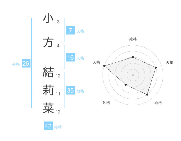 小方 結莉菜さんの総格は42画の3点!