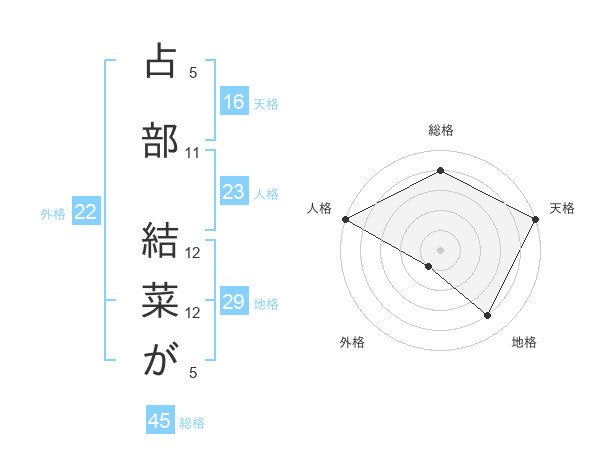 占部 結菜がさんを姓名の画数から五運を鑑定