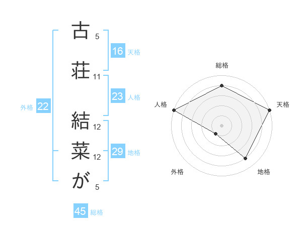 古荘 結菜がさんを姓名の画数から五運を鑑定