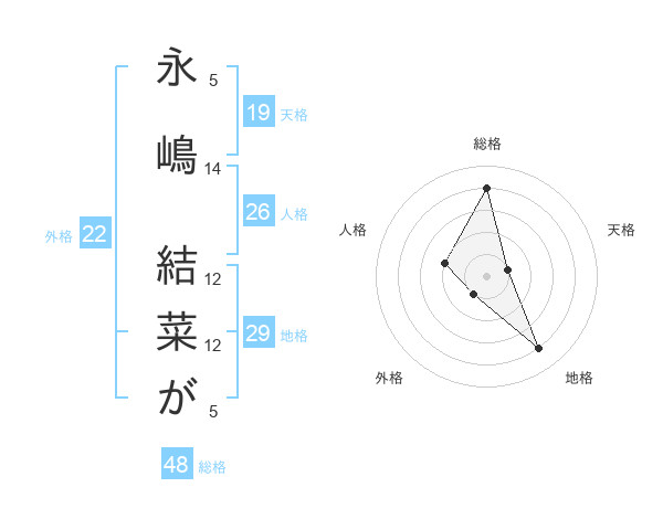 永嶋 結菜がさんを姓名の画数から五運を鑑定