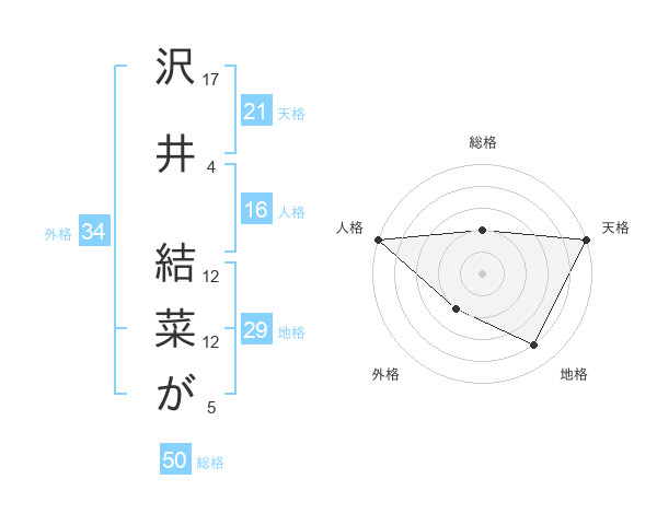 沢井 結菜がさんを姓名の画数から五運を鑑定
