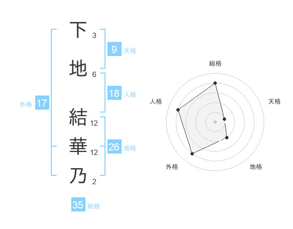 下地 結華乃さんを姓名の画数から五運を鑑定
