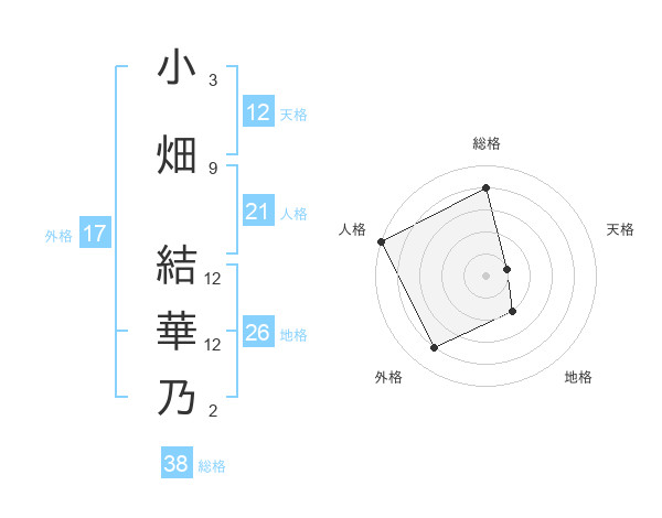 小畑 結華乃さんを姓名の画数から五運を鑑定