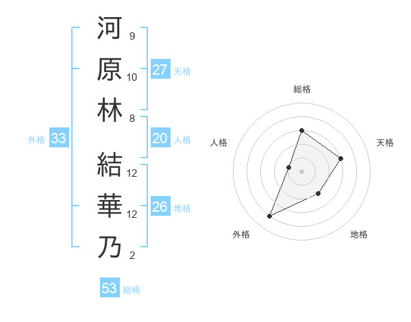 河原林 結華乃さんを姓名の画数から五運を鑑定