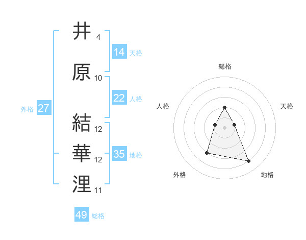 井原 結華浬さんを姓名の画数から五運を鑑定