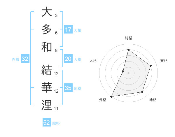 大多和 結華浬さんを姓名の画数から五運を鑑定