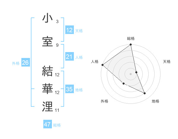 小室 結華浬さんを姓名の画数から五運を鑑定