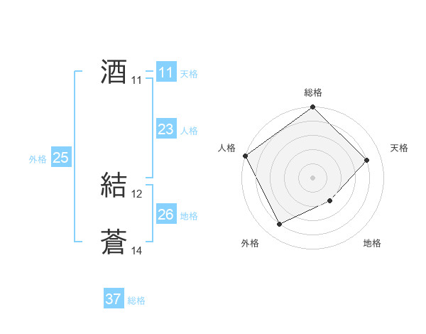 酒 結蒼さんの総格は37画の5点!