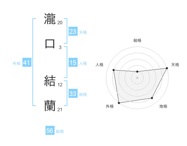 瀧口 結蘭さんを姓名の画数から五運を鑑定