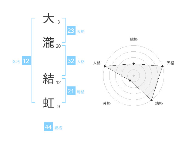 大瀧 結虹さんを姓名の画数から五運を鑑定