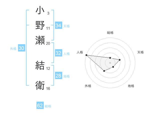 小野瀬 結衛さんを姓名の画数から五運を鑑定