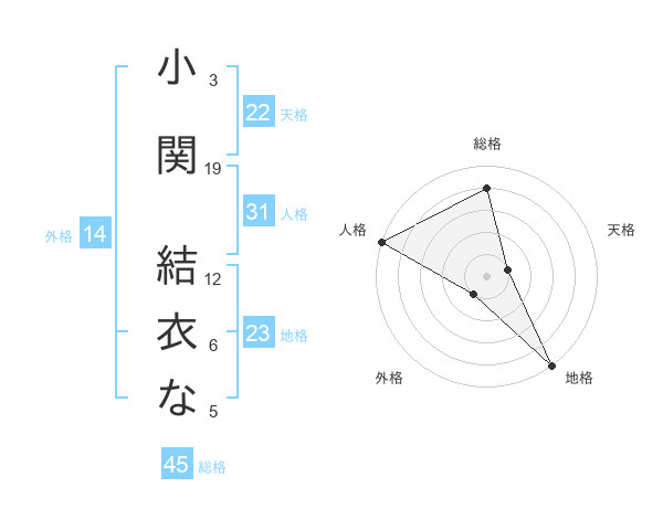 小関 結衣なさんを姓名の画数から五運を鑑定