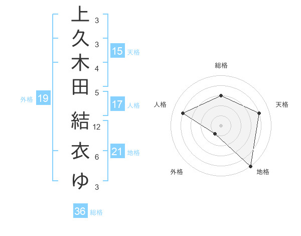 上久木田 結衣ゆさんを姓名の画数から五運を鑑定
