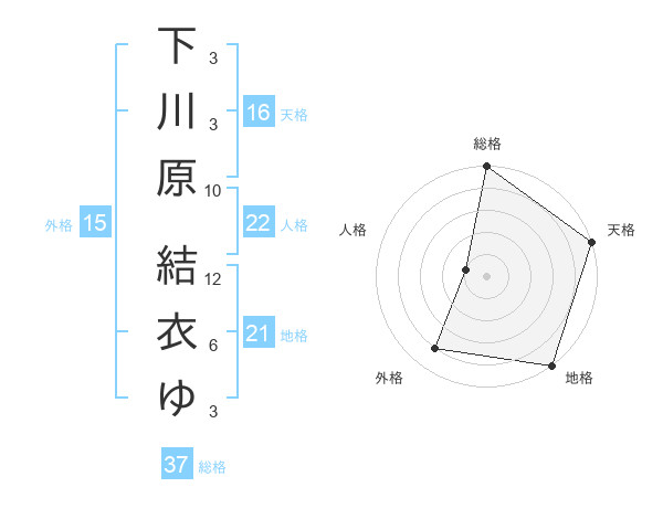 下川原 結衣ゆさんの総格は37画の5点