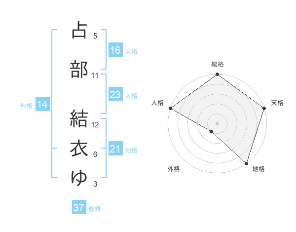 占部 結衣ゆさんを姓名の画数から五運を鑑定