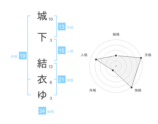 城下 結衣ゆさんを姓名の画数から五運を鑑定