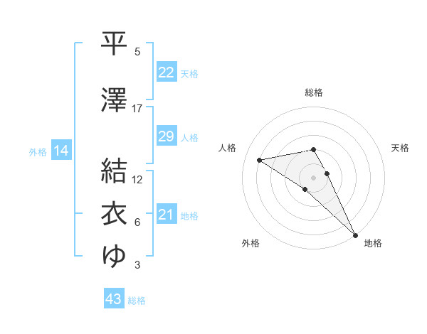 平澤 結衣ゆさんを姓名の画数から五運を鑑定