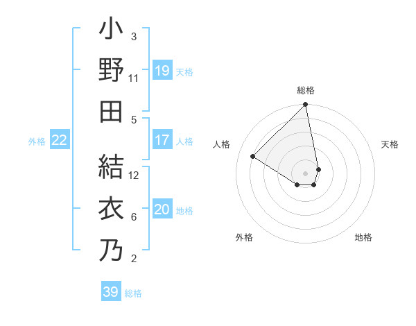 小野田 結衣乃さんを姓名の画数から五運を鑑定