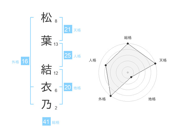 松葉 結衣乃さんの外格は16画の5点!