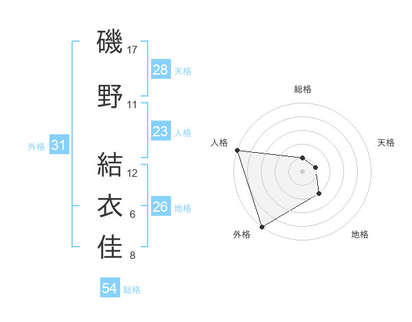 磯野 結衣佳さんを姓名の画数から五運を鑑定