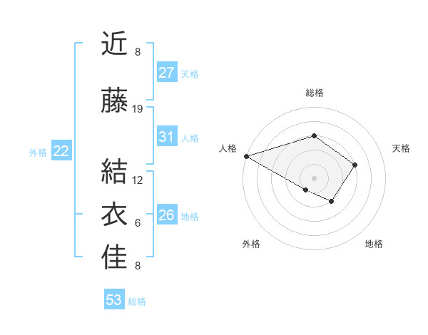 近藤 結衣佳さんを姓名の画数から五運を鑑定