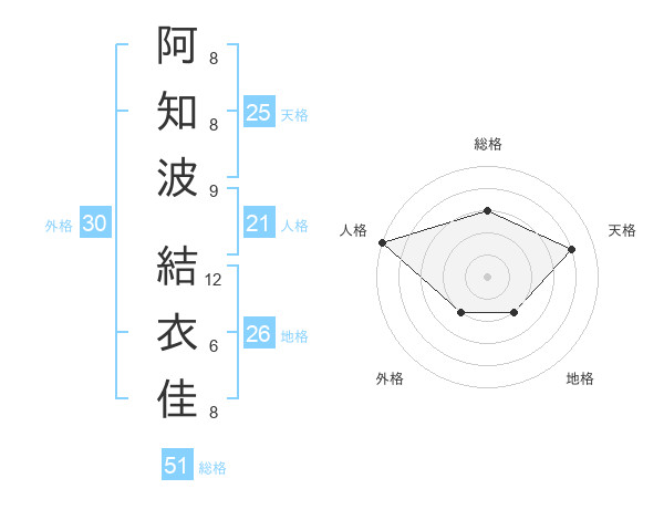 阿知波 結衣佳さんの総格は51画の3点!