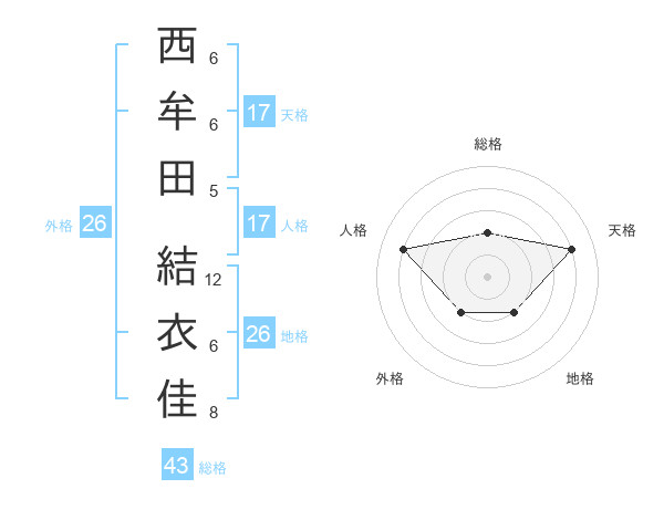 西牟田 結衣佳さんの天格は17画の4点!