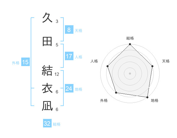 久田 結衣凪さんの地格は24画の5点!