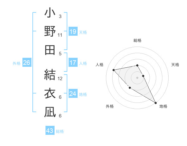 小野田 結衣凪さんを姓名の画数から五運を鑑定
