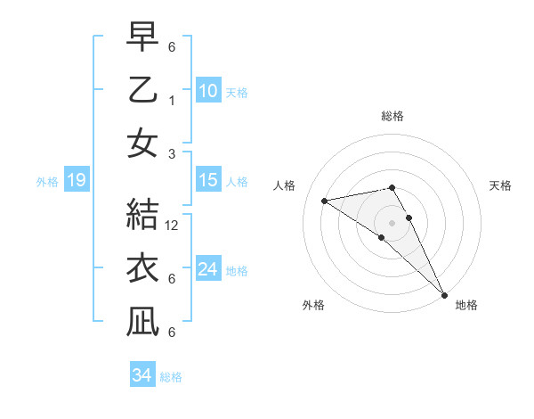 早乙女 結衣凪さんを姓名の画数から五運を鑑定