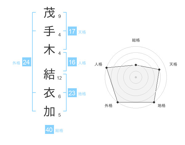 茂手木 結衣加さんを姓名の画数から五運を鑑定