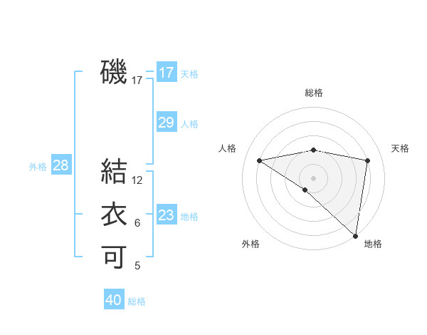 磯 結衣可さんを姓名の画数から五運を鑑定