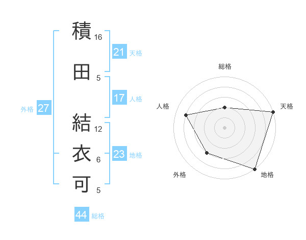 積田 結衣可さんを姓名の画数から五運を鑑定
