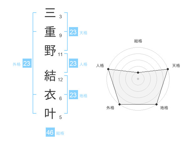 三重野 結衣叶さんの天格は23画の5点!