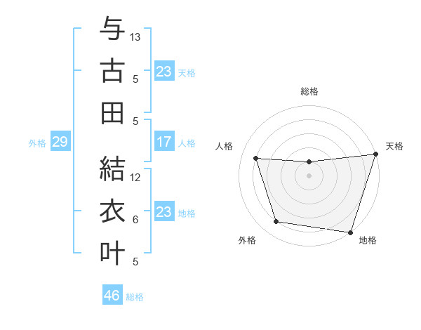 与古田 結衣叶さんを姓名の画数から五運を鑑定