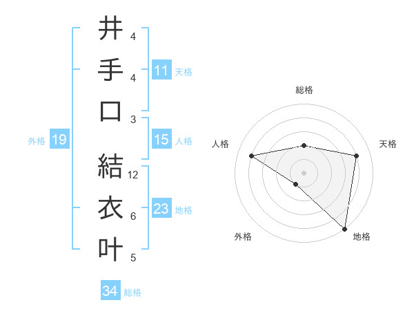 井手口 結衣叶さんの総格は34画の2点!