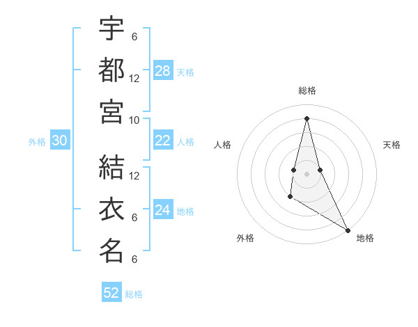 宇都宮 結衣名さんを姓名の画数から五運を鑑定