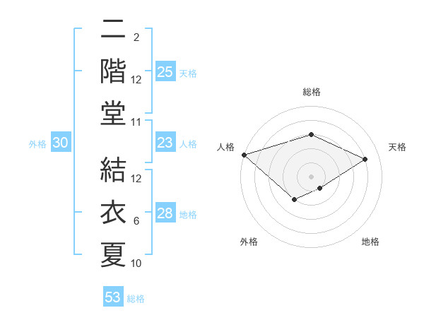 二階堂 結衣夏さんを姓名の画数から五運を鑑定