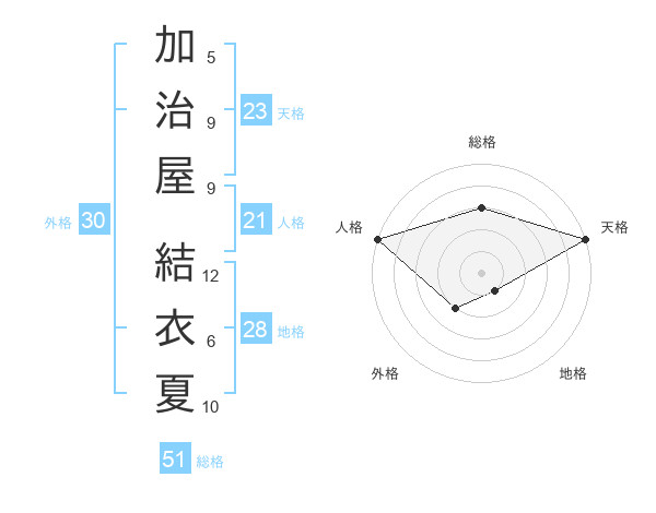 加治屋 結衣夏さんを姓名の画数から五運を鑑定