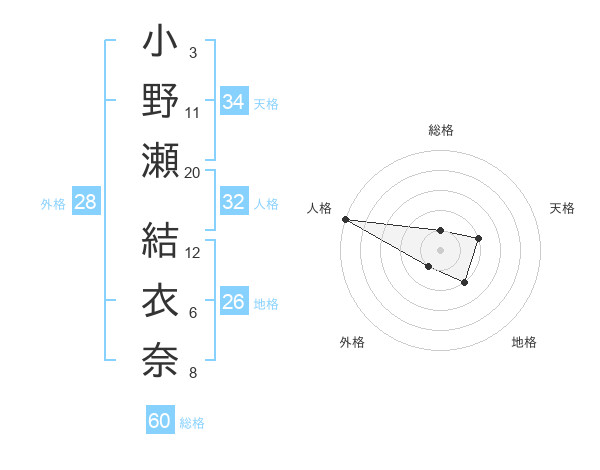 小野瀬 結衣奈さんを姓名の画数から五運を鑑定