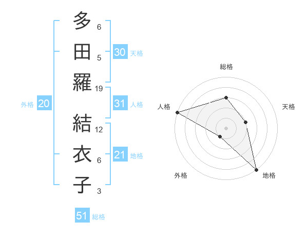多田羅 結衣子さんを姓名の画数から五運を鑑定