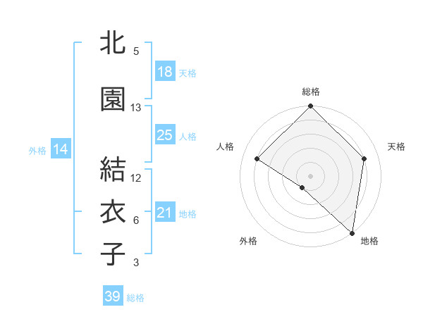 北園 結衣子さんを姓名の画数から五運を鑑定
