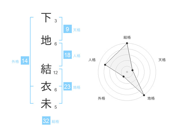 下地 結衣未さんを姓名の画数から五運を鑑定