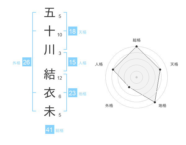 五十川 結衣未さんを姓名の画数から五運を鑑定