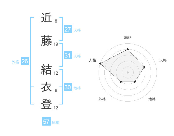 近藤 結衣登さんの総格は57画の4点!