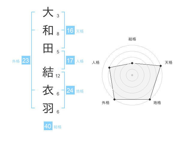 大和田 結衣羽さんの外格は23画の5点